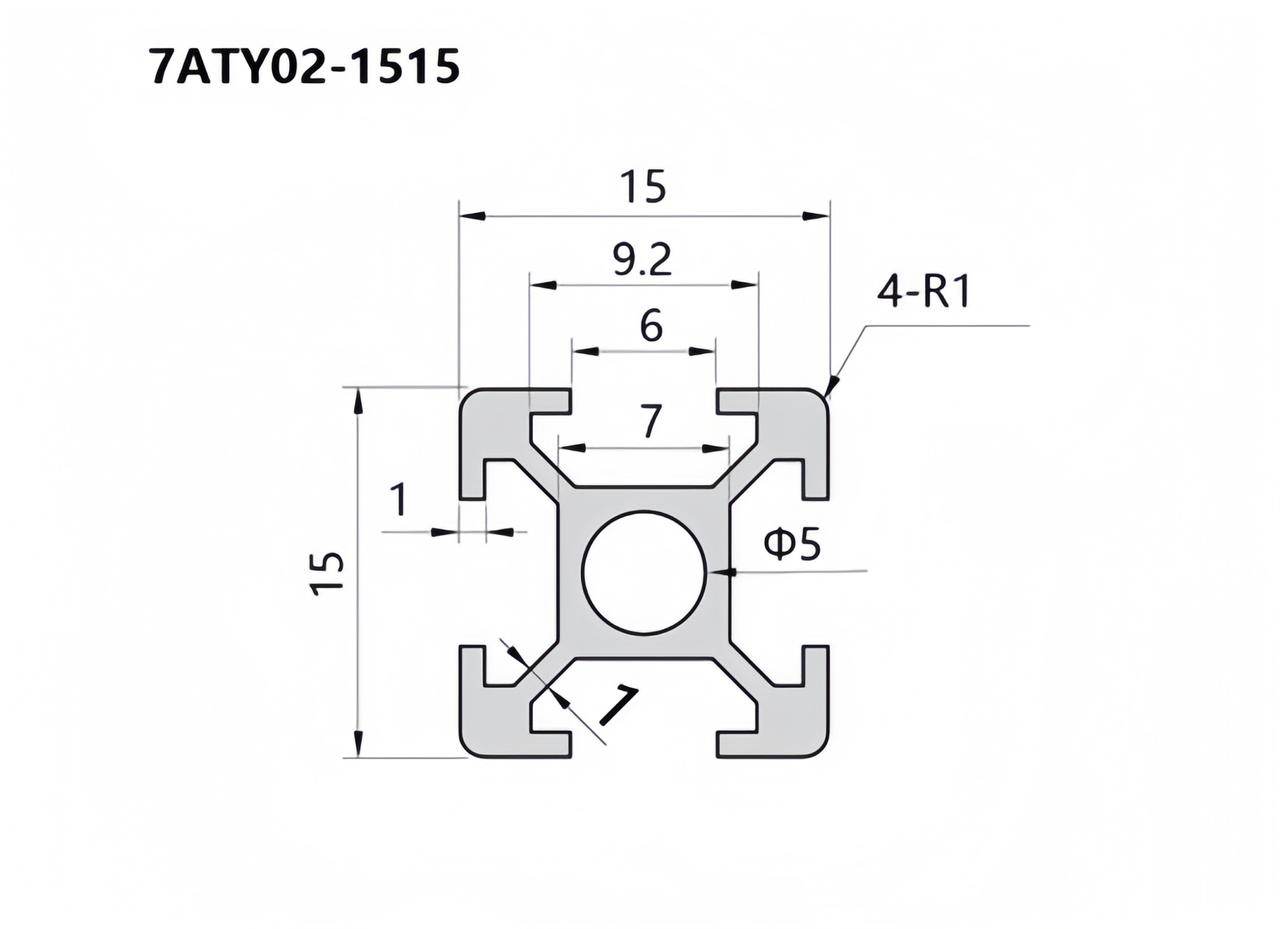 | TL7ATY-1515 | 15×15(mm) | 0.23kg/m | 6063 Al | Silver Anodized | 6.0mm | 100-6000 |